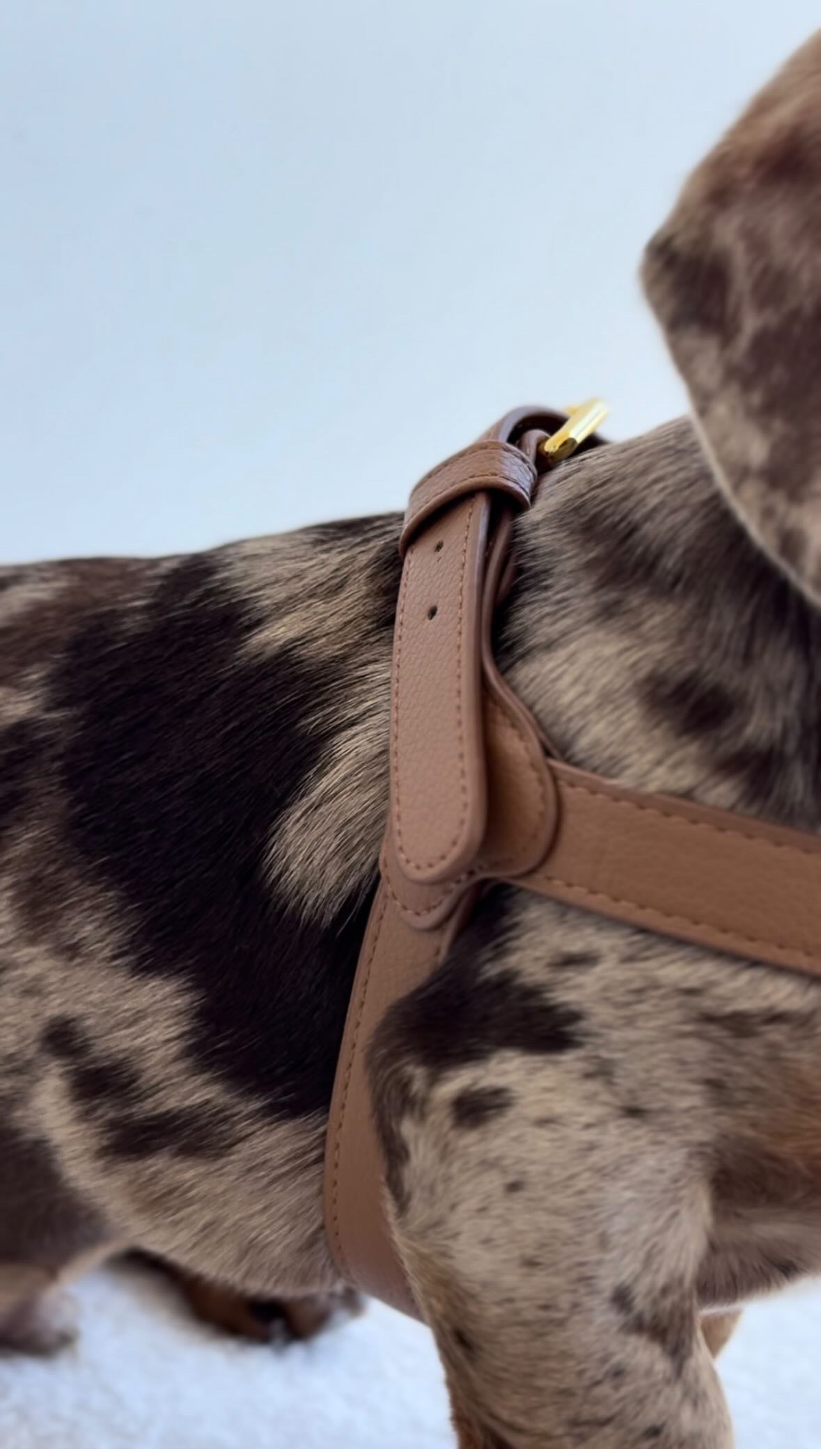 Disponible en cuir grainé ou lisse, chaque harnais se distingue par son raffinement et sa finition haut de gamme. La médaille en cuir, personnalisée à la demande avec l’initiale de votre chien, apporte une touche d’authenticité. Un détail signature qui transforme chaque accessoire en pièce iconique, pensée pour un style irréprochable et élégant en toute occasion.