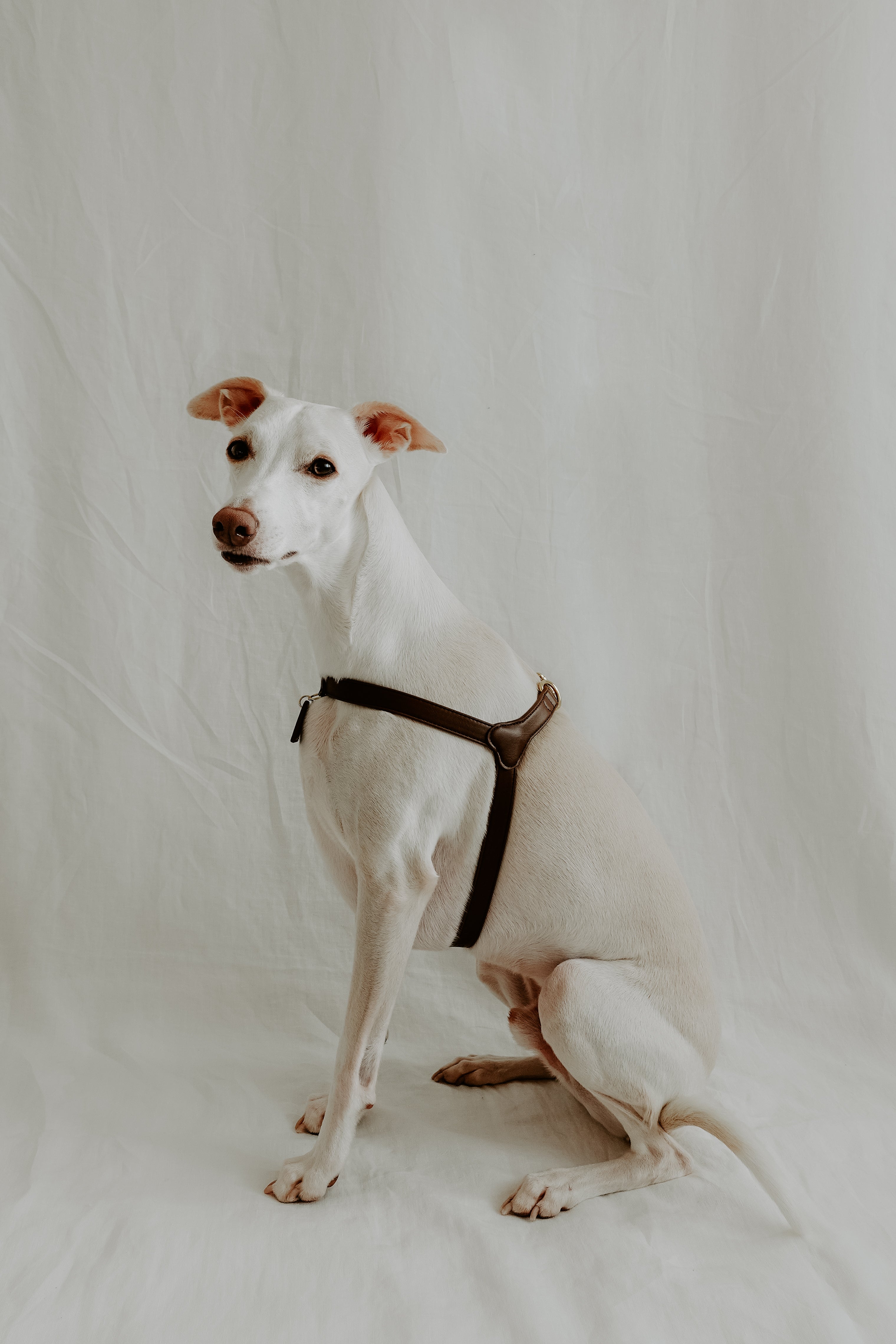 Le harnais est réalisé en cuir vegan coloris espresso, une teinte profonde et actuelle. Il a été pensé pour offrir un rendu élégant, discret et facile à associer au quotidien. Contrairement à d’autres types de harnais, il se met très rapidement et facilement sur votre chien, et se règle à l’aide d’une boucle de réglage.