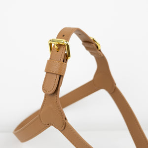 Confortable et facile à ajuster, ce harnais en cuir s’adapte parfaitement à toutes les morphologies grâce à ses différentes positions réglables. Sa boucle dorée permet une attache rapide et sécurisée, idéale pour un usage quotidien tout en offrant un maintien optimal.