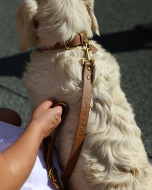 Conçue à la main dans nos ateliers, cette laisse en cuir vegan aux finitions laiton est très pratique pour promener votre chien aussi bien en ville qu'en forêt.